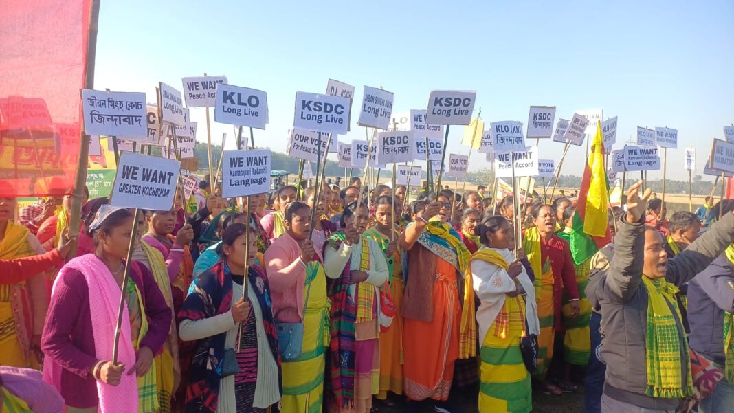 It may be noted that on Tuesday, Koch-Rajbongshi organisations had assembled at the Padmabil Lakshmi Temple premises in Puthiagaon with the intention of enforcing the indefinite rail blockade at Salakati railway station. Although the blockade was suspended, protesters raised slogans and staged a strong demonstration at the Lakshmi Temple playground in support of their demands.