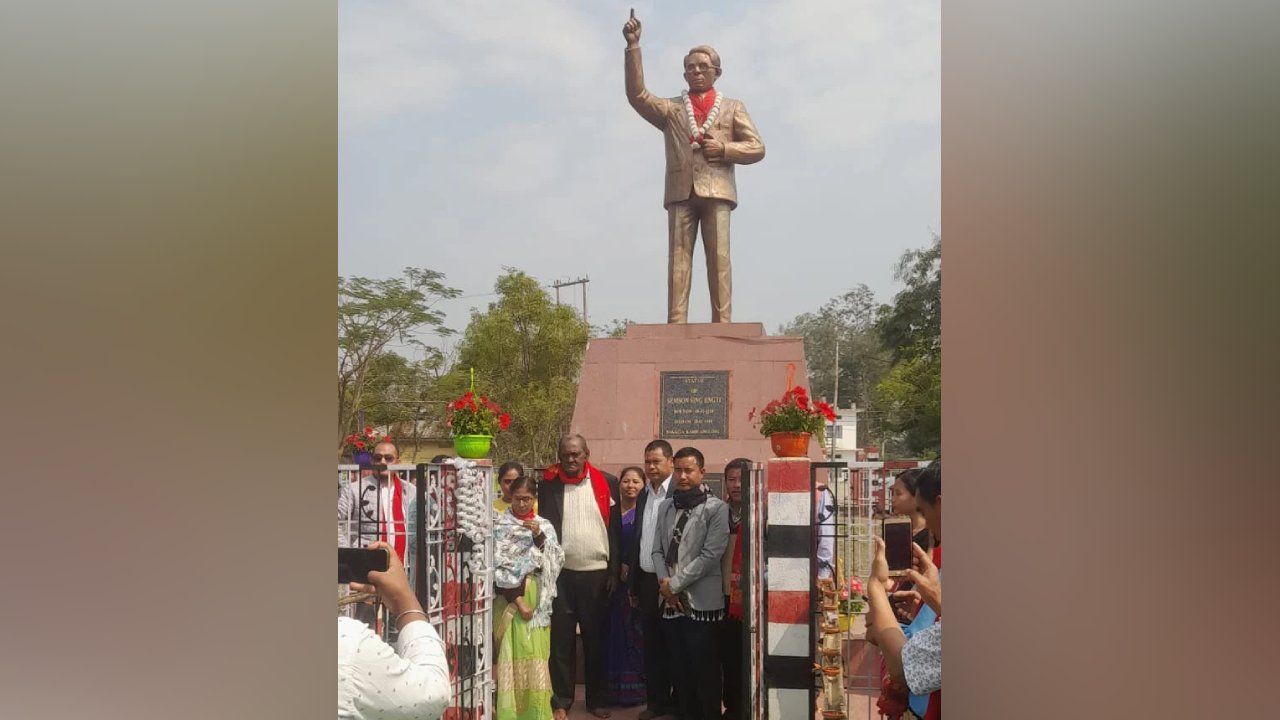 Floral tributes adorned the statue of Semson Sing Ingti, accompanied by the illumination of earthen lamps, symbolising the enduring legacy of the revered leader.
