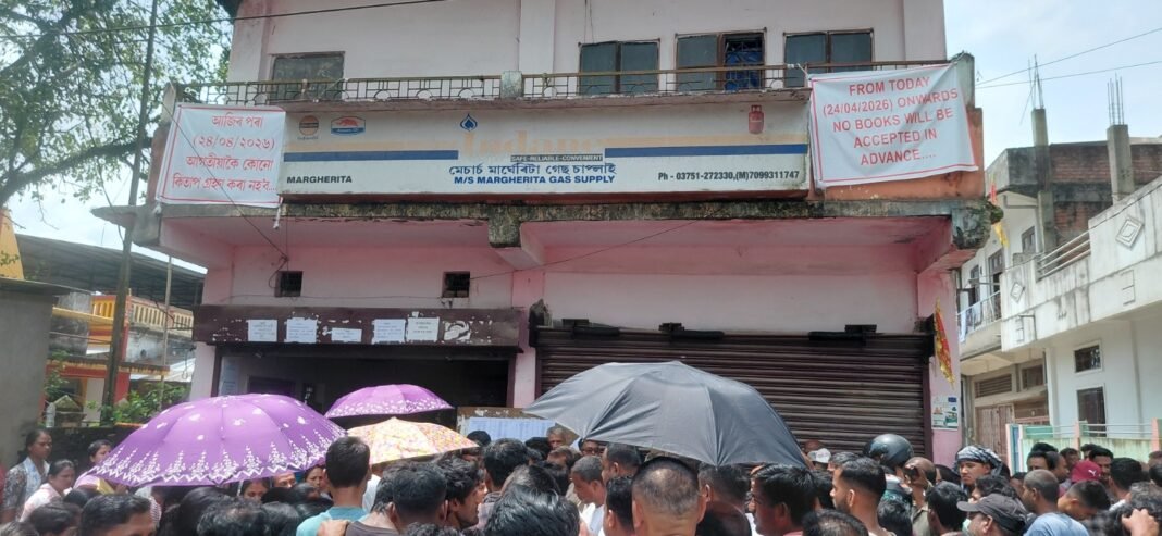 MARGHERITA, April 29: A tense situation unfolded outside M/S Margherita Gas Supply in Margherita town on Wednesday morning hours following an alleged shortage of LPG cooking gas, with hundreds of consumers gathering at the agency premises amid mounting frustration over supply issues.