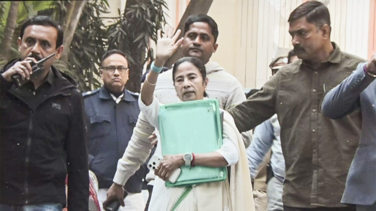 The chief minister has accused the central agency of overreach, while her party, the TMC, has denied the ED’s allegation of “obstructing” its probe. The state’s police have registered an FIR against ED officers. (PTI)